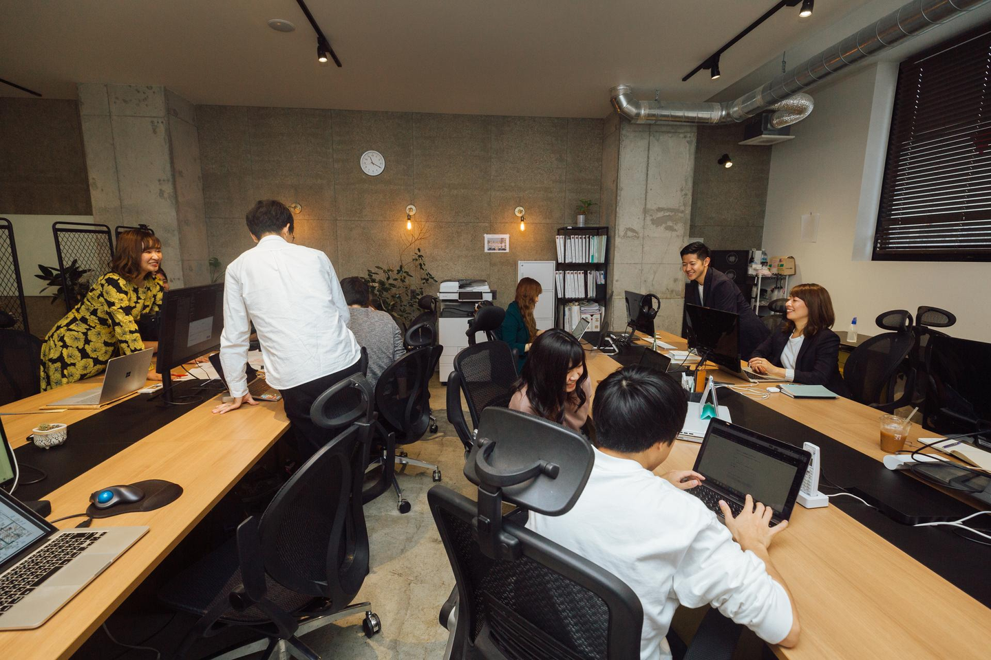 弊社のオフィスの雰囲気を一言で説明すると「文化祭前夜のような雰囲気」です。バタバタ、わちゃわちゃしているのも事実ですがメンバーからは忙しくて大変、しかしながら楽しみながら業務をこなしている様子が窺えます。