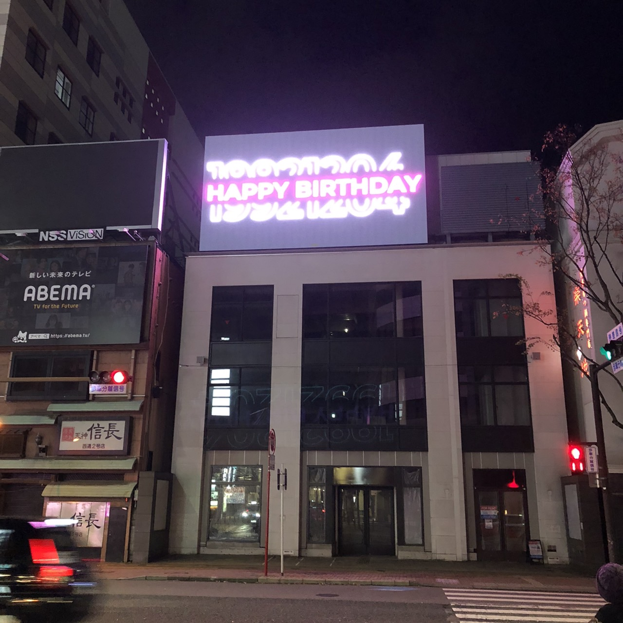 普段は企業広告などで利用いただくことが多いLEDビジョンですが、最近大人気なのが、有名人の誕生日をお祝いするサプライズ動画の放映。