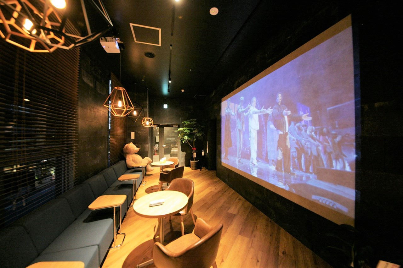 壁面を大画面プロジェクターの投影スペースにし、まるで映画館の中にいるかのよう。入った瞬間にワクワクしてもらえるような、そんな空間づくりを心がけていることが伝わるのではないでしょうか。