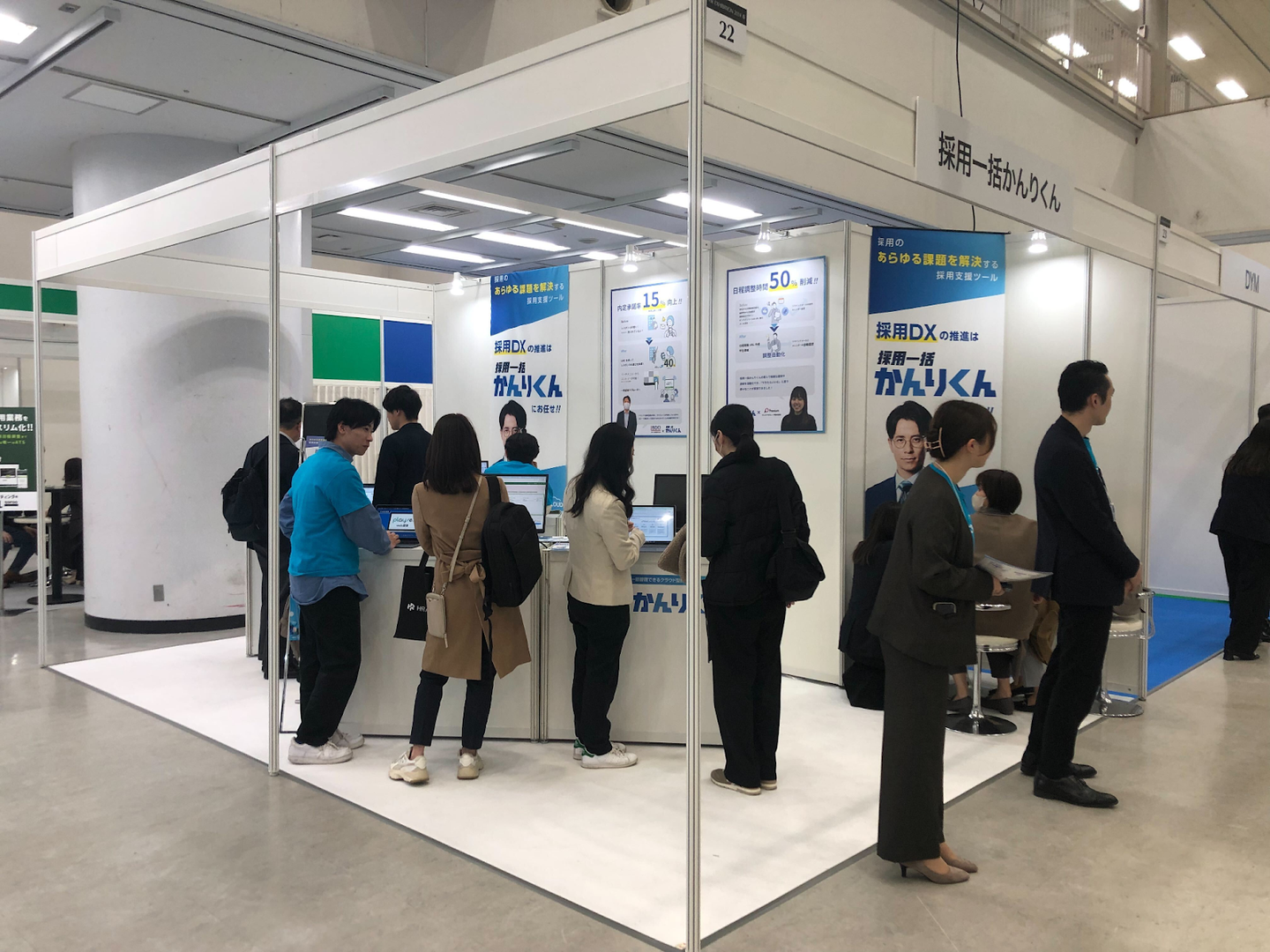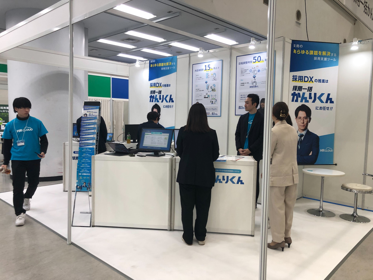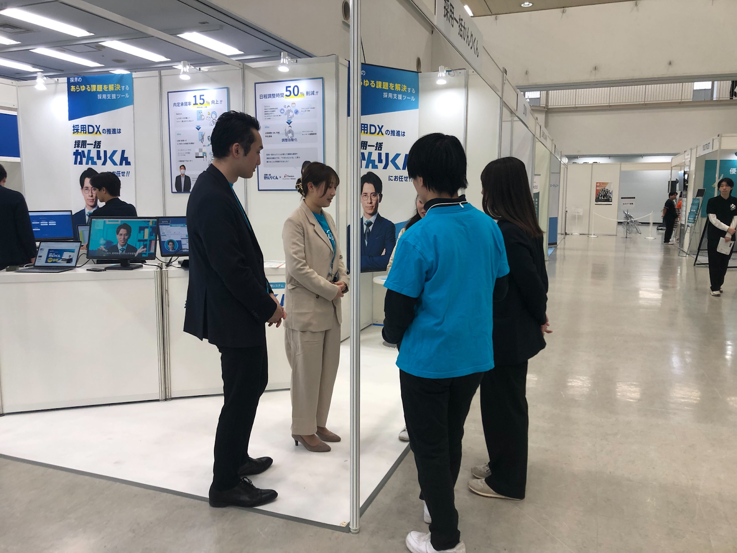 そのため、HRサービスに関心のある方々が展示会に参加しており、弊社のサービスの一つである「採用一括かんりくん」を知ってもらうには絶好の機会です!また、実際にHRサービスを利用する側の声を直接聞くことができるので、メンバーにとっても非常に貴重な機会となっています!そのため、ブースを盛り上げられるようメンバー同士の一体感が高まるイベントでもあります。