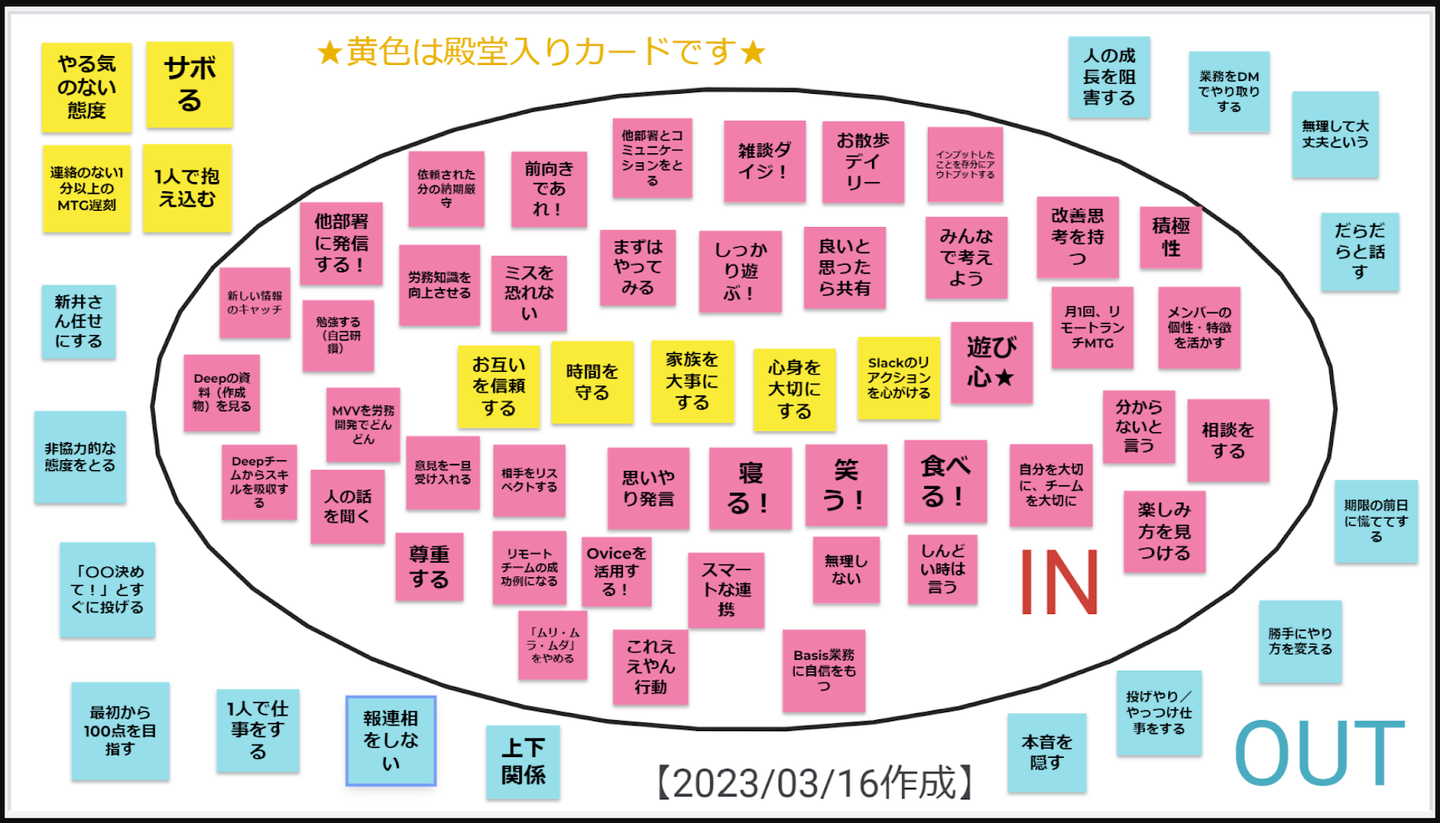 チームコントラクトは、定期的に開催するチーム合宿で見直しを行います。殿堂入りのキーワードもあれば、変更するキーワードもあります。リモートメンバーが多いチームだからこそ、気持ちよく働くための仕掛けは必要です。