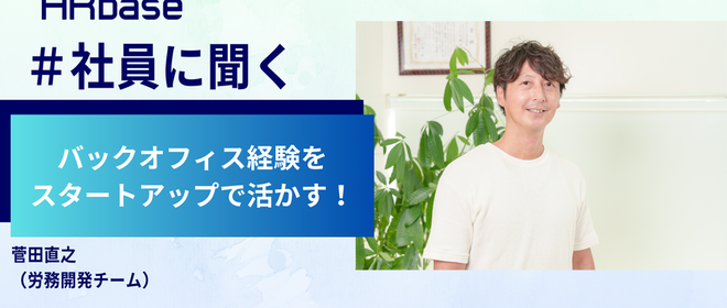 株式会社HRbase 採用チームです。今回は、株式会社HRbaseに2024年10月にジョインし、バックオフィス経験を活かして「労務開発チーム」という一風変わったチームで活躍をしている菅田直之さんに、仕事内容やチームの雰囲気についてお話をお聞きしました。これまでのキャリアについて教えてください大学卒業後、ファーストキャリアは不動産関係の会社でした。総合職でたまたま人事部に配属され、福利厚生、出勤簿のチェック、年末調整のチェック、給与システムの変更プロジェクトなどを担当したのが、人事労務との出会いの始まりです。その後、より人事労務の領域で経験を積みたいと思い転職。大学の学校法人やBPO会社...