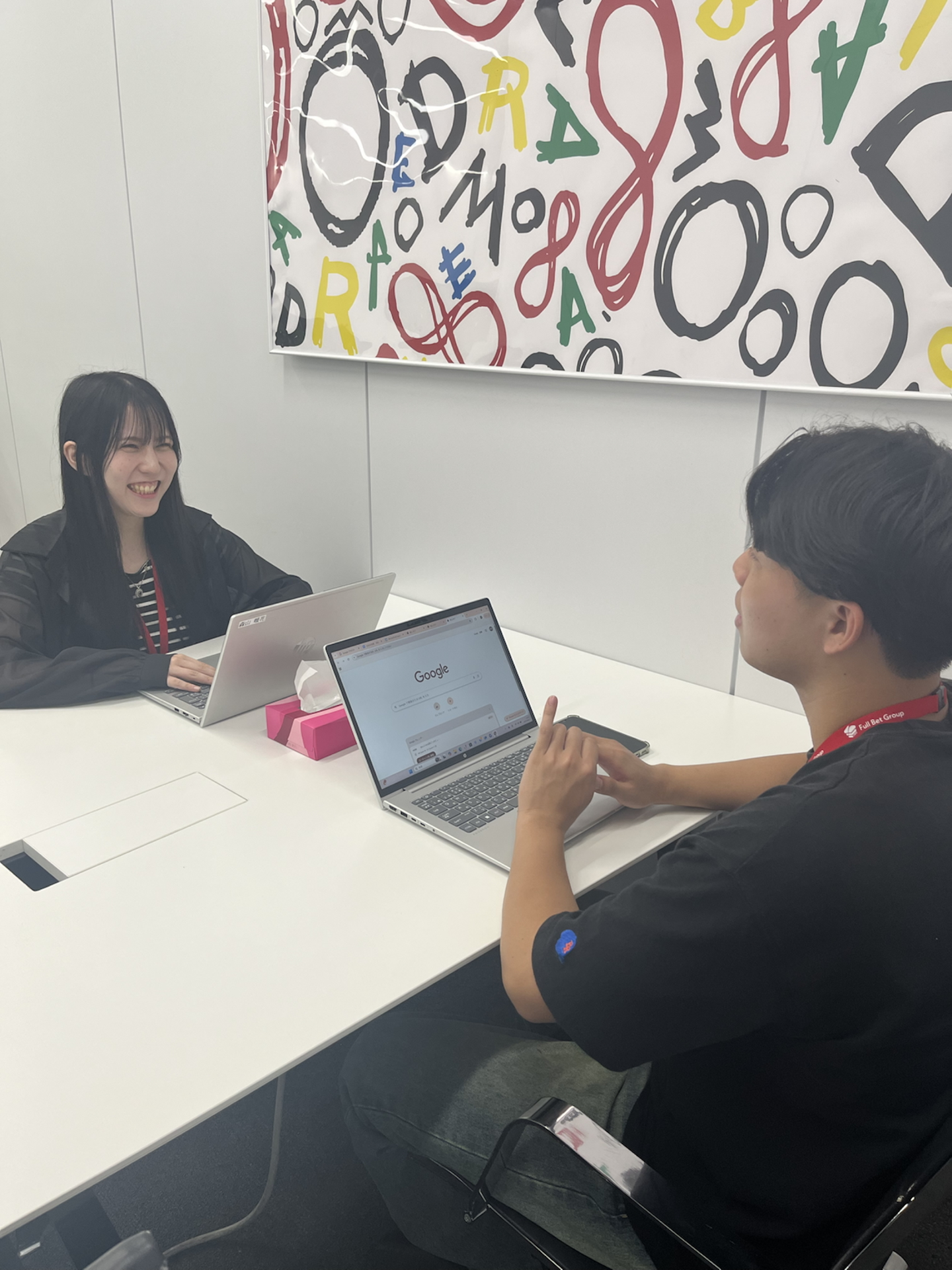 山田さん)私もキャリアアドバイザーさんに紹介をしてもらったのがきっかけです!就職活動をしている中でガクチカがないなと思っていて、熱心に取り組んだ経験が欲しいという話を自分のキャリアアドバイザーさんにしたら、「ここのインターンみんな熱量をもってやっているよ!」と教えてもらいました!それで気になってインターンをやることを決めました!