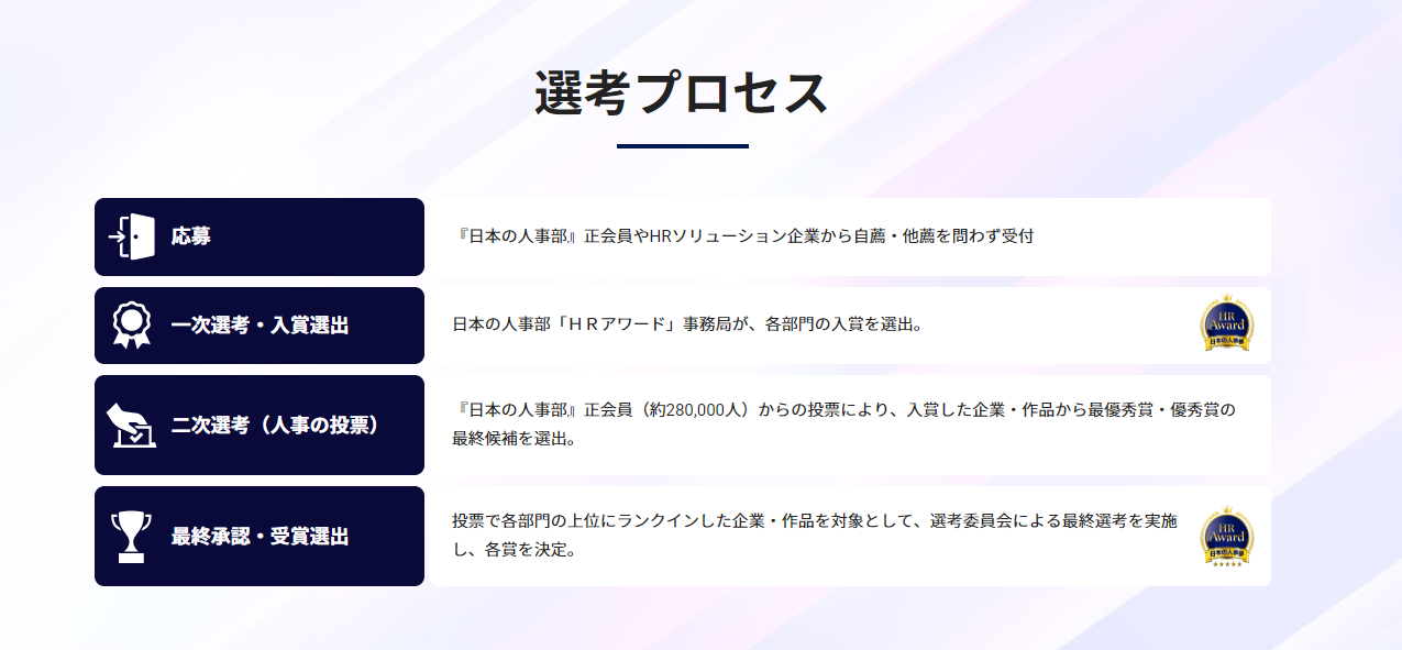 「HRアワード」の特長は、企業人事が選考に関わることです。