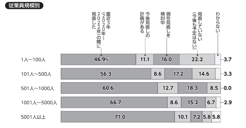 一方で、「今後見直しの計画がある」「現在見直しを検討中」という企業からは、