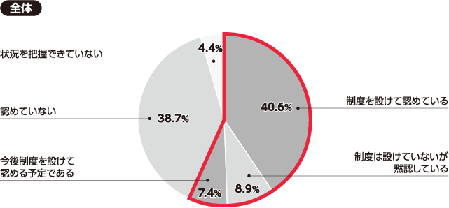 「制度を設けて認めている」が約4割と最も多い割合を占めている結果となりました。