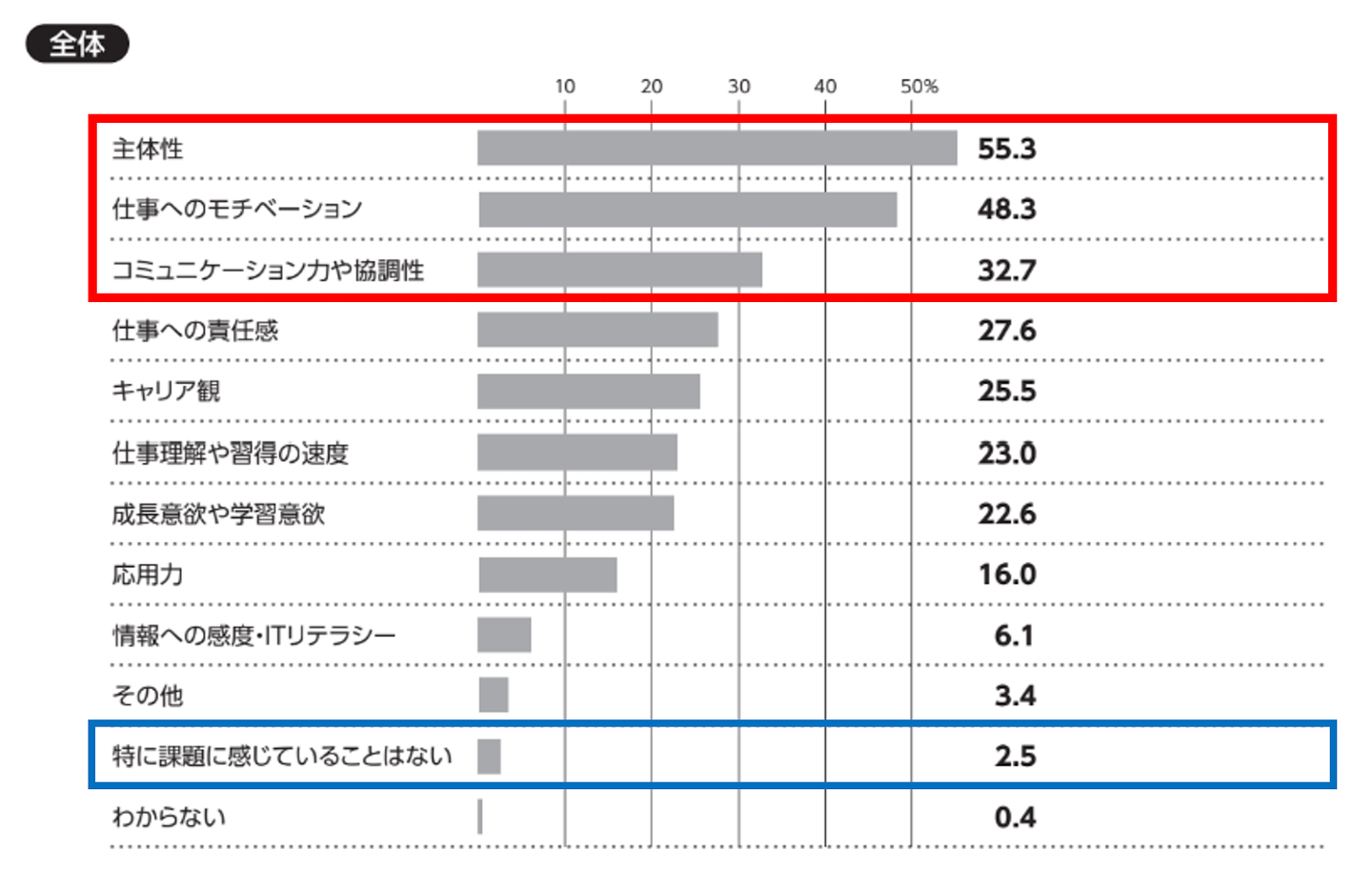 続いて「仕事へのモチベーション」「コミュニケーション力や協調性」という結果となりました。