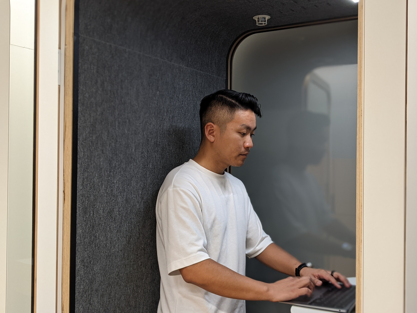*普段の商談はオフィス内にあるフォンブースを使って行っております。