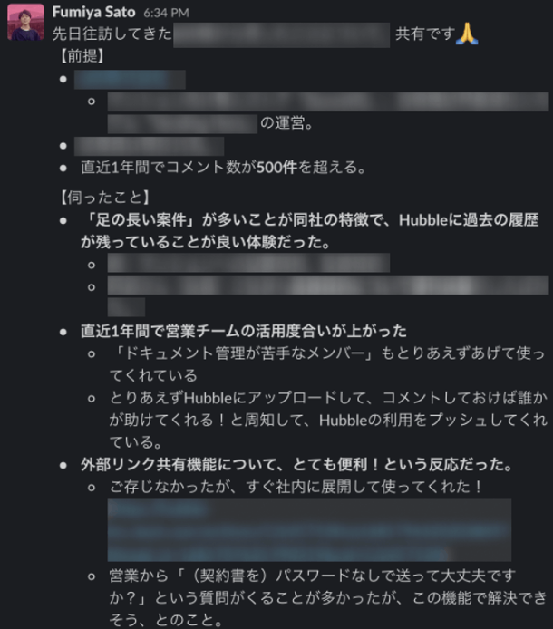 また、カスタマーサクセスチームが積極的に導入いただいているお客様の声を共有してくれるのは、非常に嬉しいです。