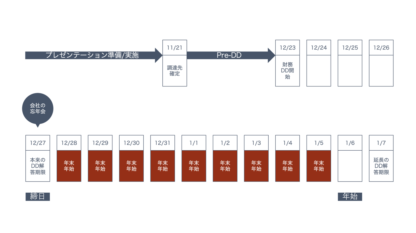 当時、藤田ファンドと既存投資家から2億円強の資金調達を進め、年末にDDが待ち構えていました。