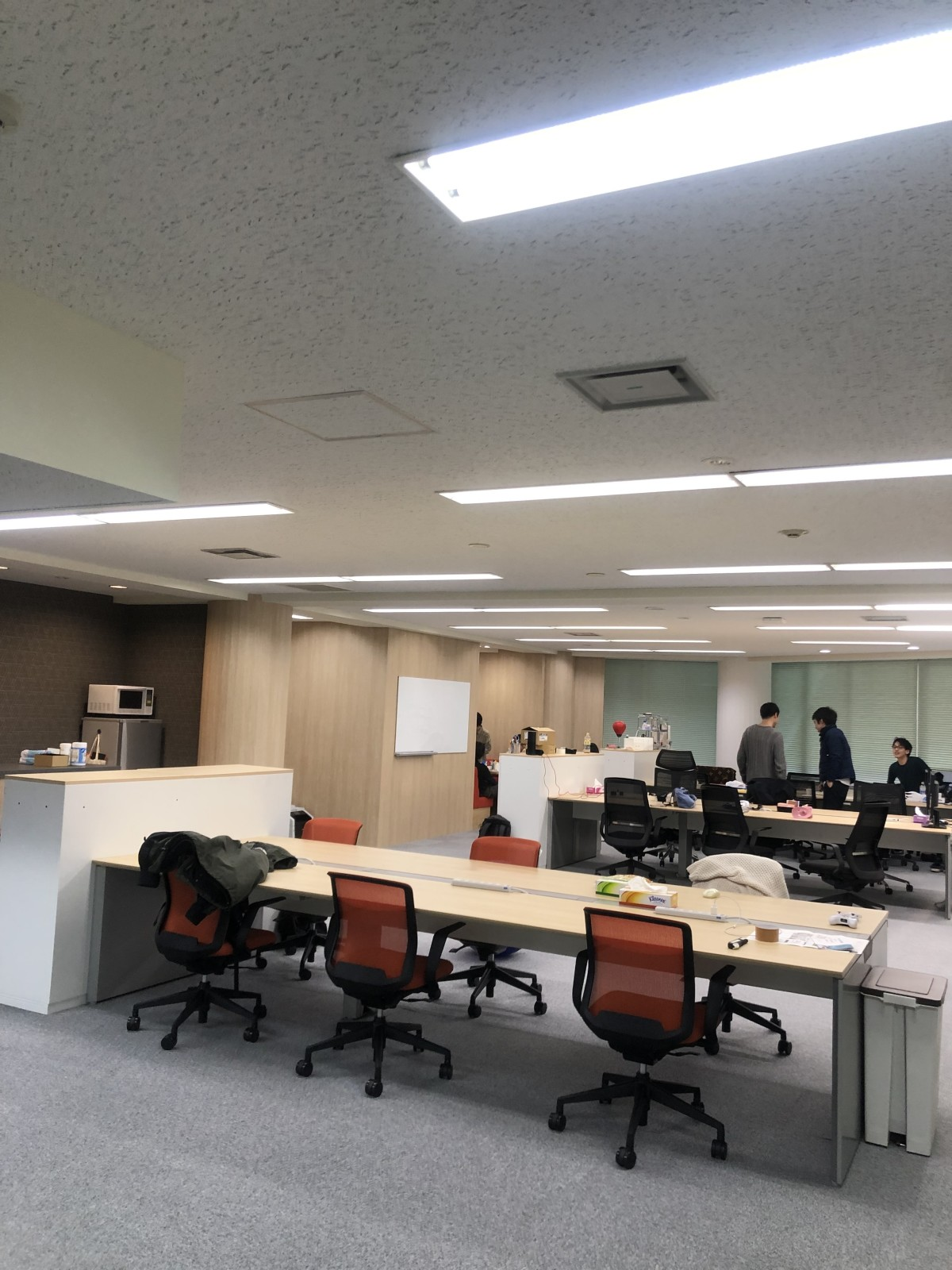 (ぎりぎり12人入るボロオフィスから、45人入るオフィスに移転しました。それなのに社員数は半減しました。)