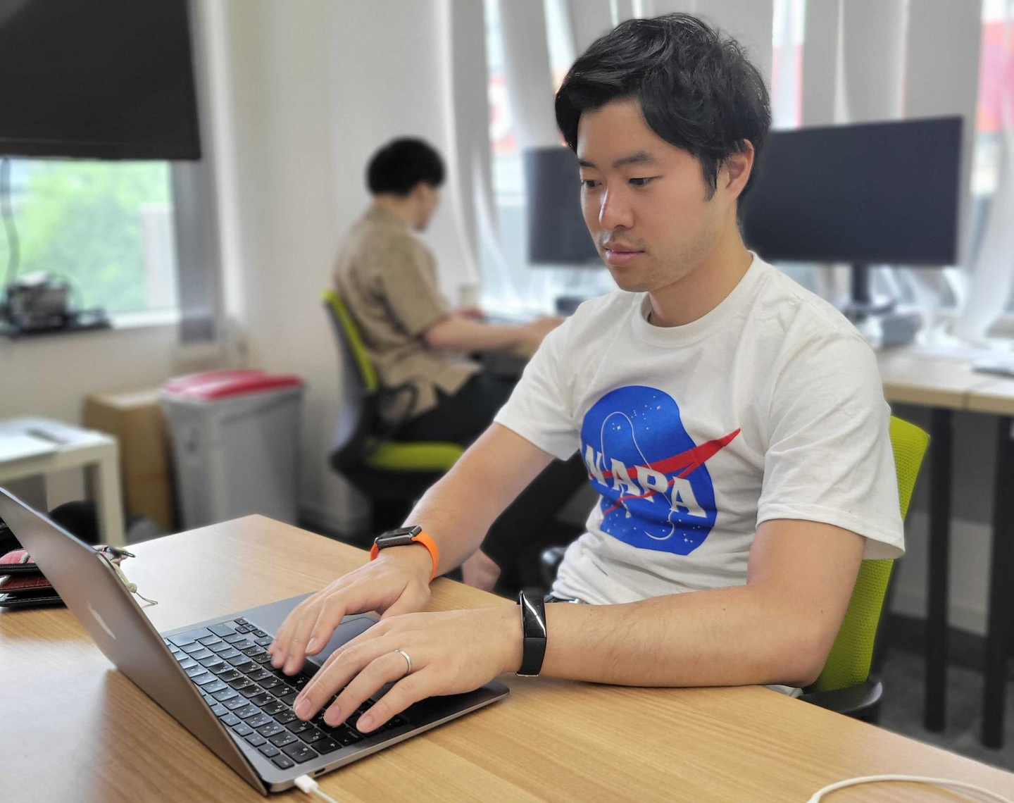 ※帰国後、しばらくアメリカ仕込みのTシャツをご機嫌で着用していた大西。NASAっぽいNAPAは筆者のお気に入りです。