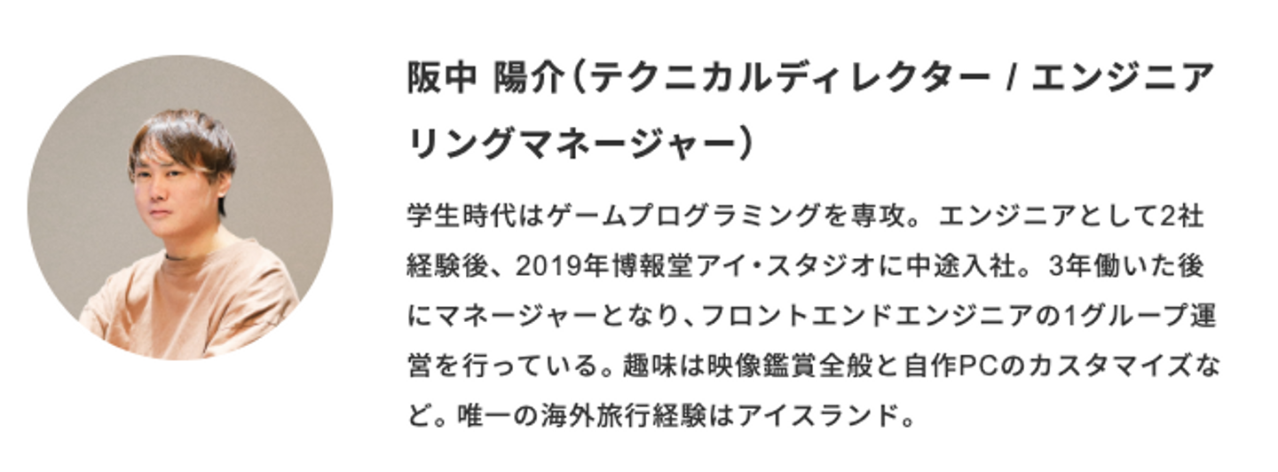 そんなタイミングで、博報堂アイ・スタジオ(以降アイスタ)に転職した元同僚から話を聞いたんです。実際の仕事からも技術レベルの高さが窺え、エンジニアとしてのキャリアが広がりそうだなと惹かれました。」