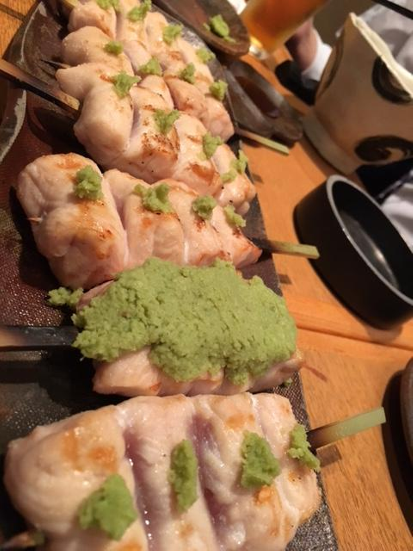 鶏ささみの山葵のせを一人ひと串・・・ん?