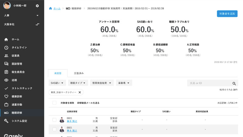 • ダッシュボード(ひと目でSAS疑いのある人がどのくらいいるか把握できる画面)の追加