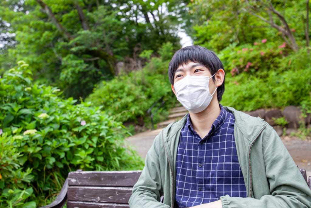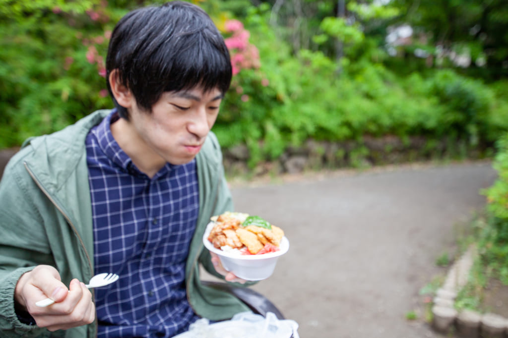 (3密を避けるためにカレーをテイクアウトして公園でインタビューしました)