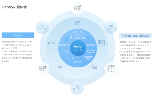 当社は「働くひとの健康を世界中に創る」をパーパスとし、2016年に健康管理システム「Carely」(ケアリィ)を開発・運営しています。2022年1月時点における累計契約企業数は500社を超え、アカウント数はサービス開始から年平均成長率121%で伸び続けております。 ...