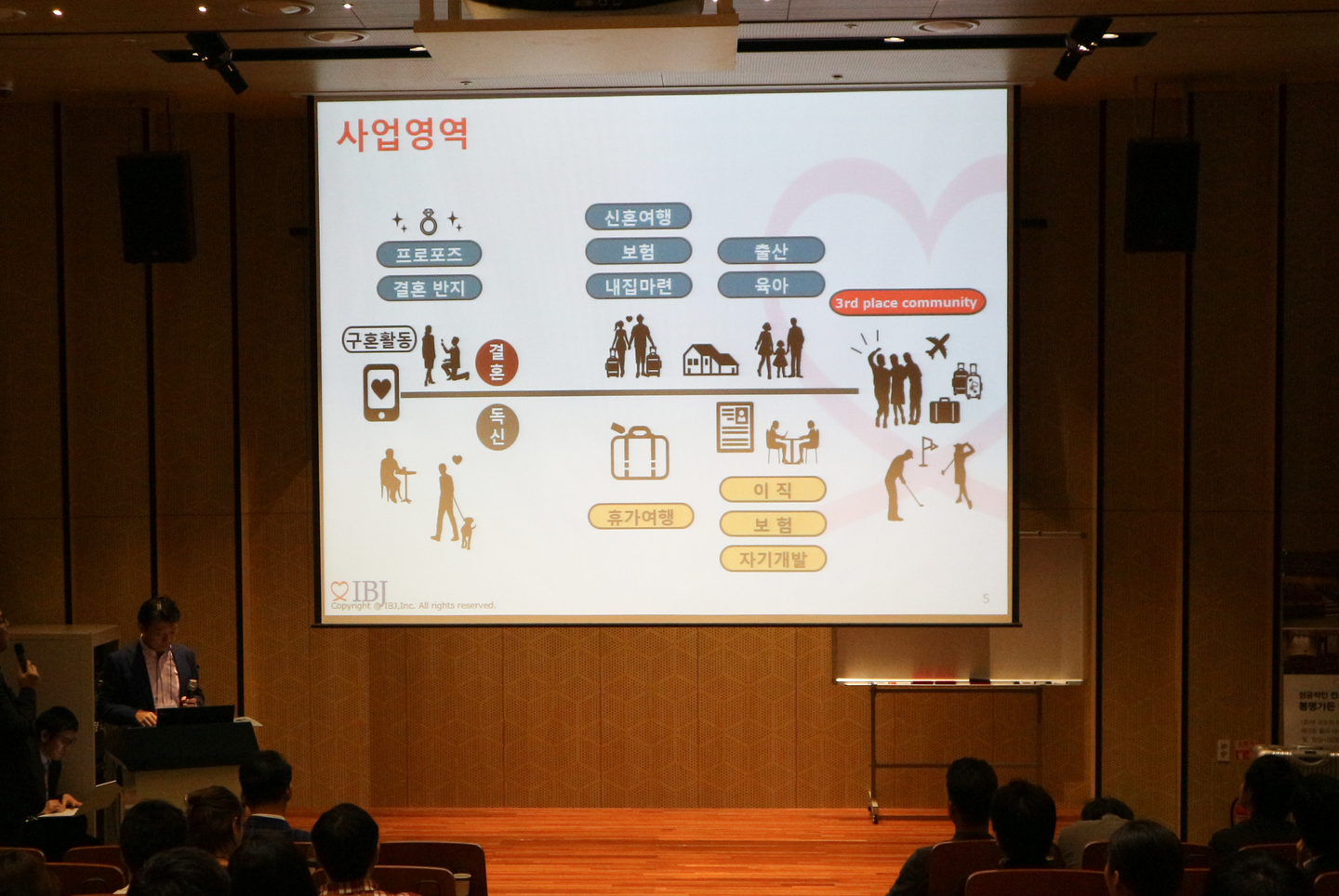 まずはIBJの事業について知ってもらうため、社長が学生たちに日本の婚活事情についてお話を。