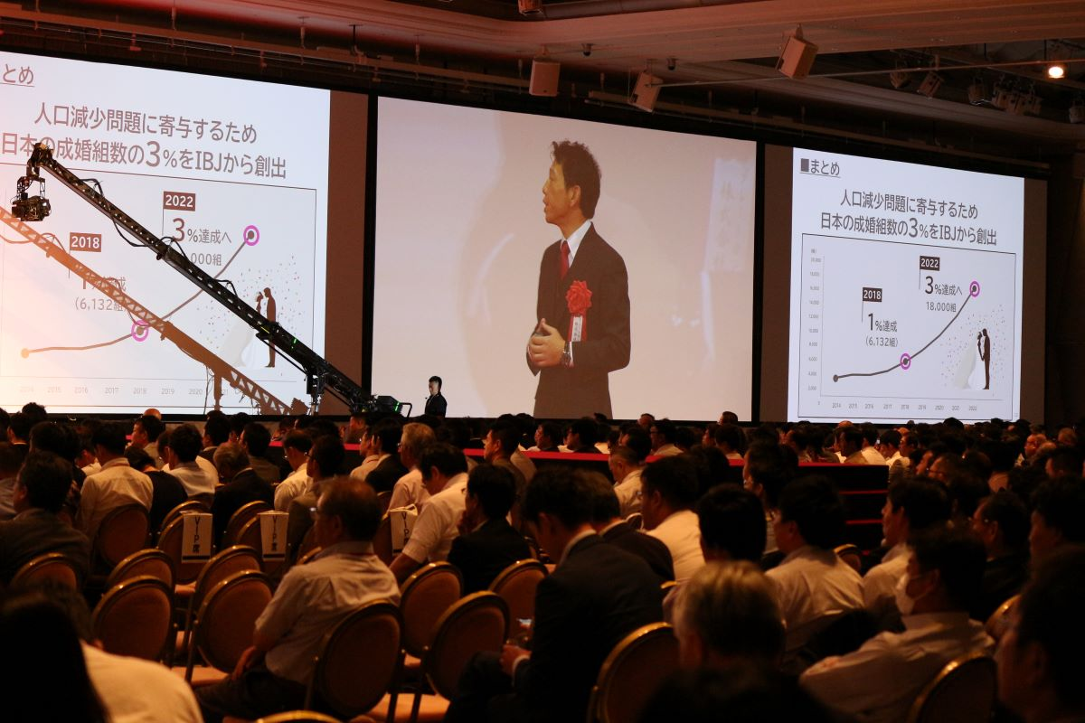 受賞式の後は大賞企業講演が設けられ、日本が抱える少子化や未婚化等の取り巻く環境についてや、IBJの見据える未来についてお話させていただきました。