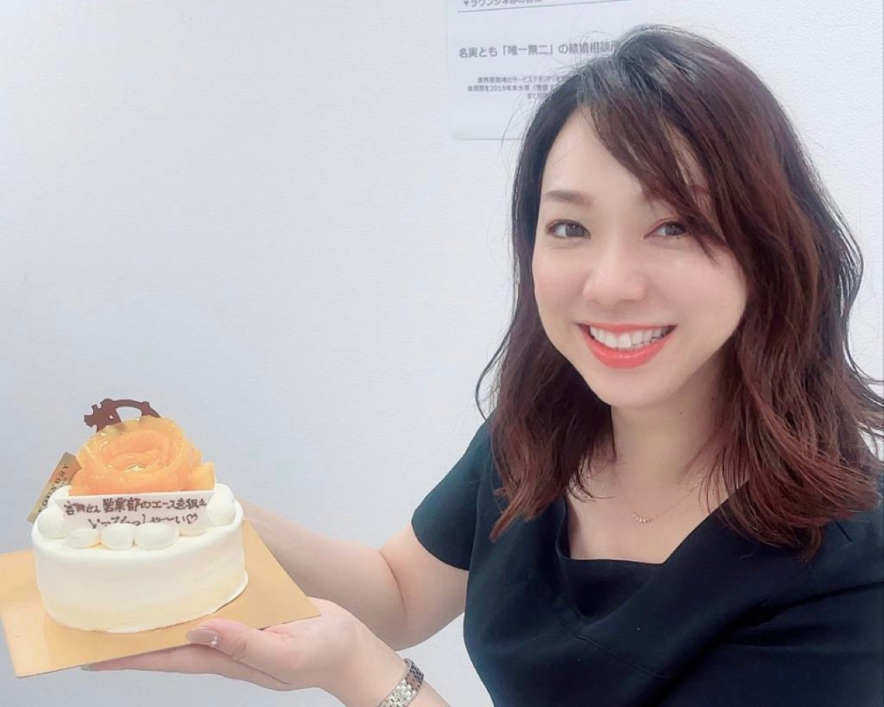 ▲アドバイザー時代の吉田さん、仲間から激励のケーキをもらって喜びのスマイル♡
