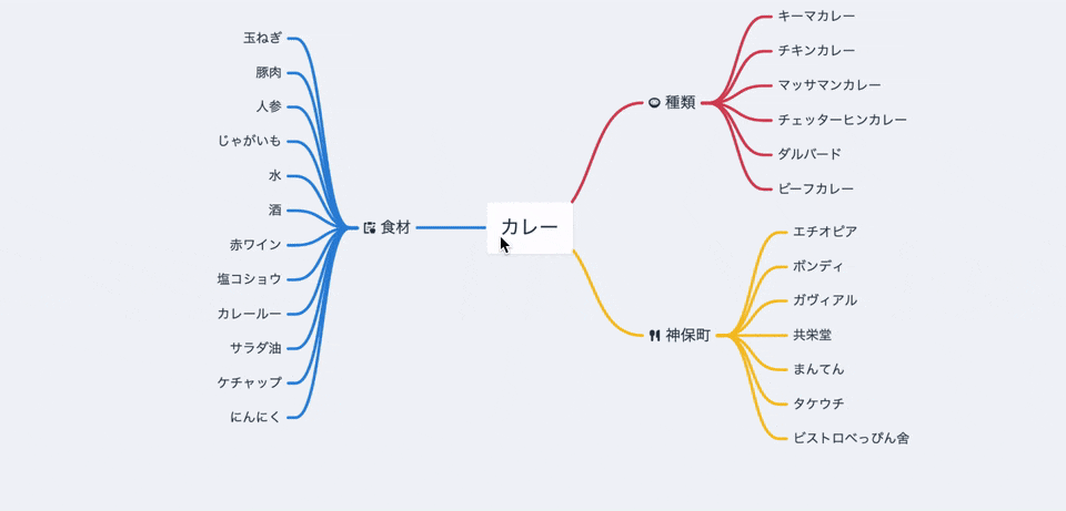 ・ロジックツリーの作成やブレインストーミングなどに使えるマインドマップ機能