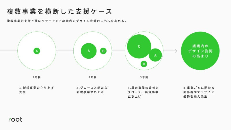 新たな支援サービスとしてデザイン組織の立ち上げ・運用支援 このビジョンへ向かう一歩として、rootは「デザイン組織の立ち上げ・運用支援サービス」を開始していきます。