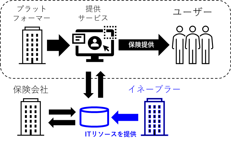 当社は保険全業務においてイネーブラーとして保険会社をサポートしておりますが、その中で組込型保険については、様々なプラットフォーマー様に導入いただきやすいサービスを目指した「組込保険ソリューション」の開発・提供を行っております。