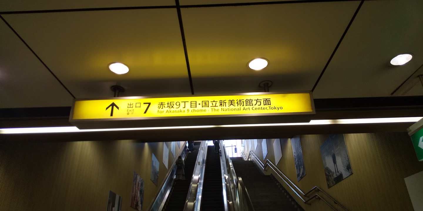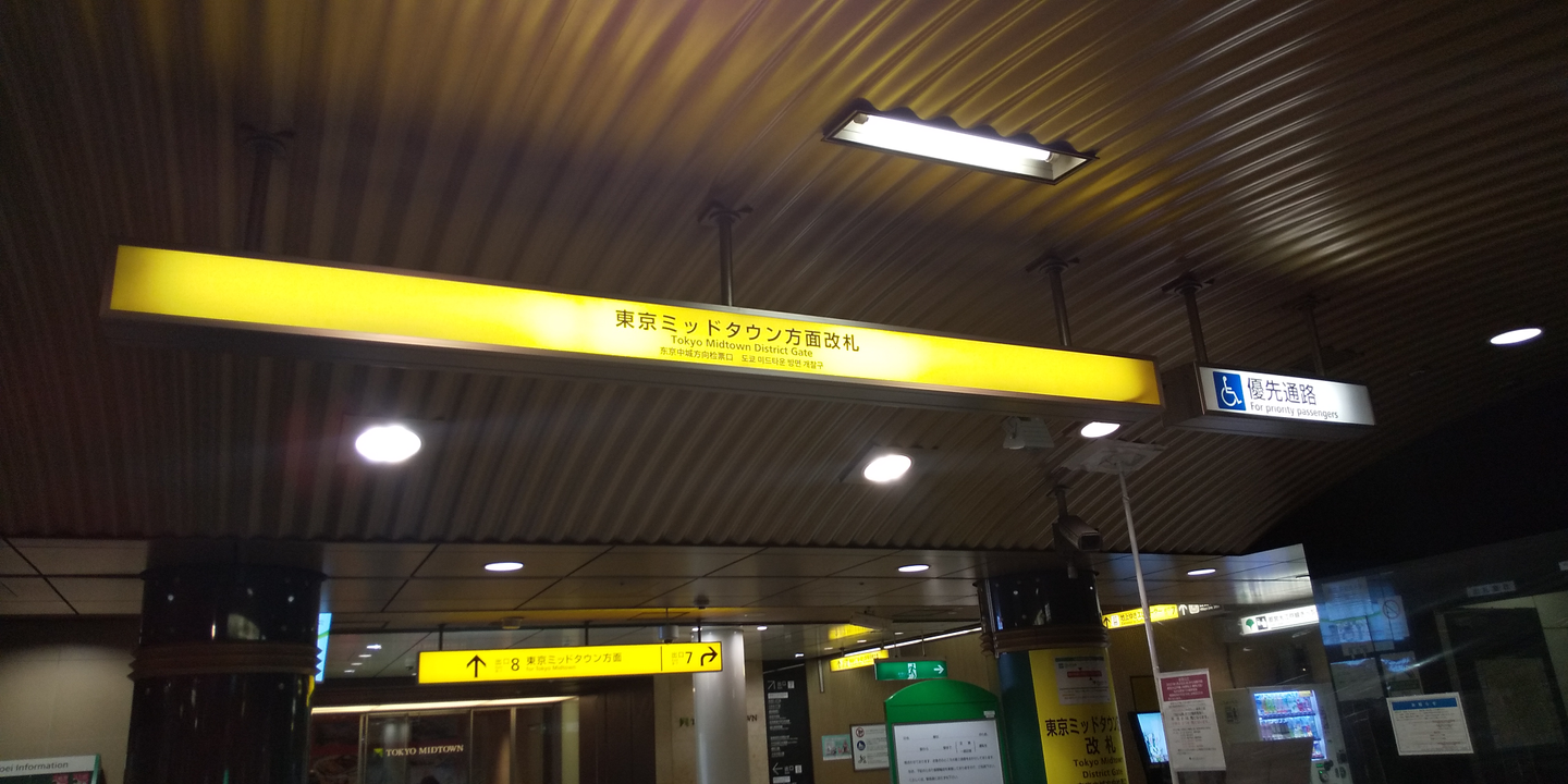 都営大江戸線、六本木駅を降りたら東京ミッドタウン方面改札から改札を出て、7番出口方面に進みます。