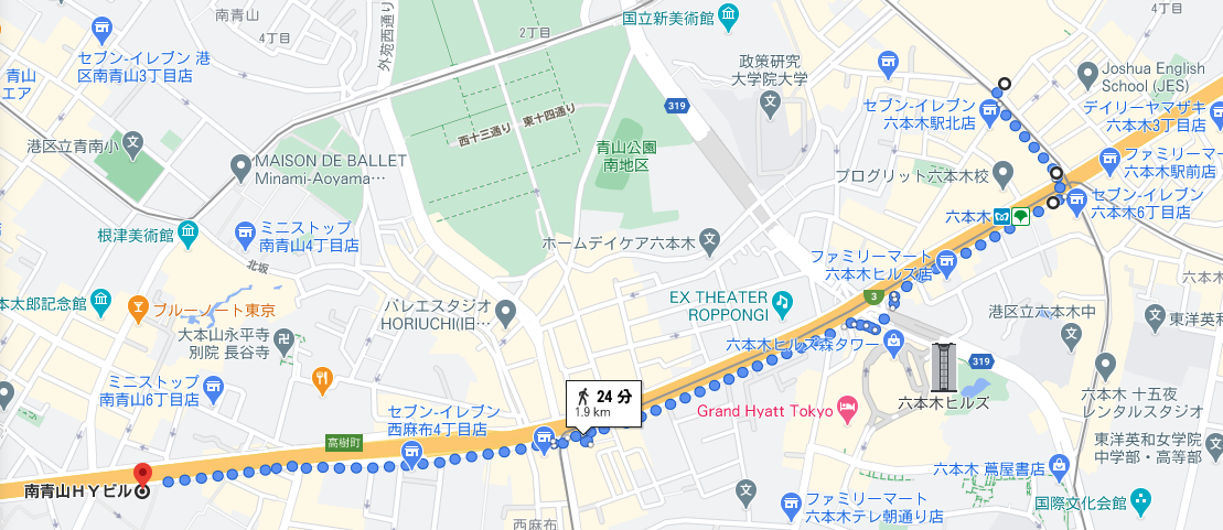 ※六本木駅からの行き方は何通りもありますが、google mapの検索で出てきた以下のルートで今回はご案内します。