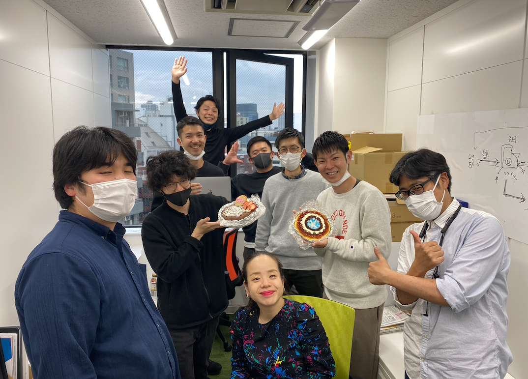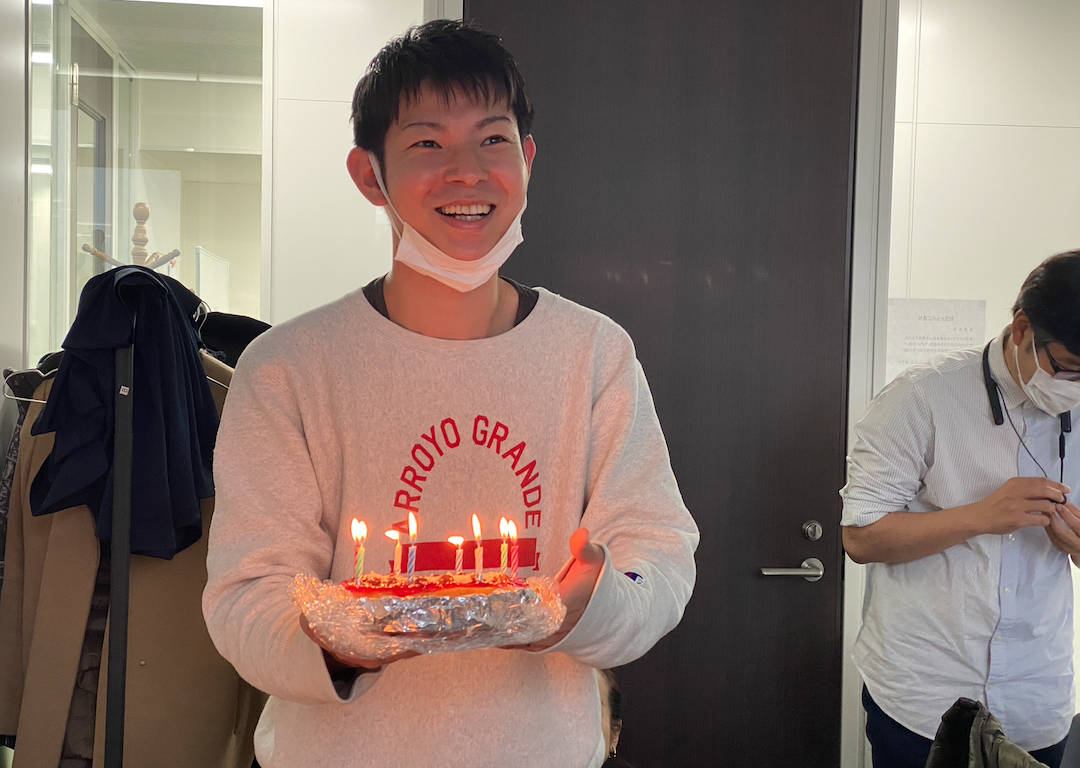 ケーキは東京CSの島袋さんが用意してくれたんですが、当日出社したらなんとケーキが手作りじゃないですか!前日の業務終了後にケーキを焼いて当日の朝にデコレーションをしてくれたそうで、島袋さんの暖かい心遣いに感動。。。