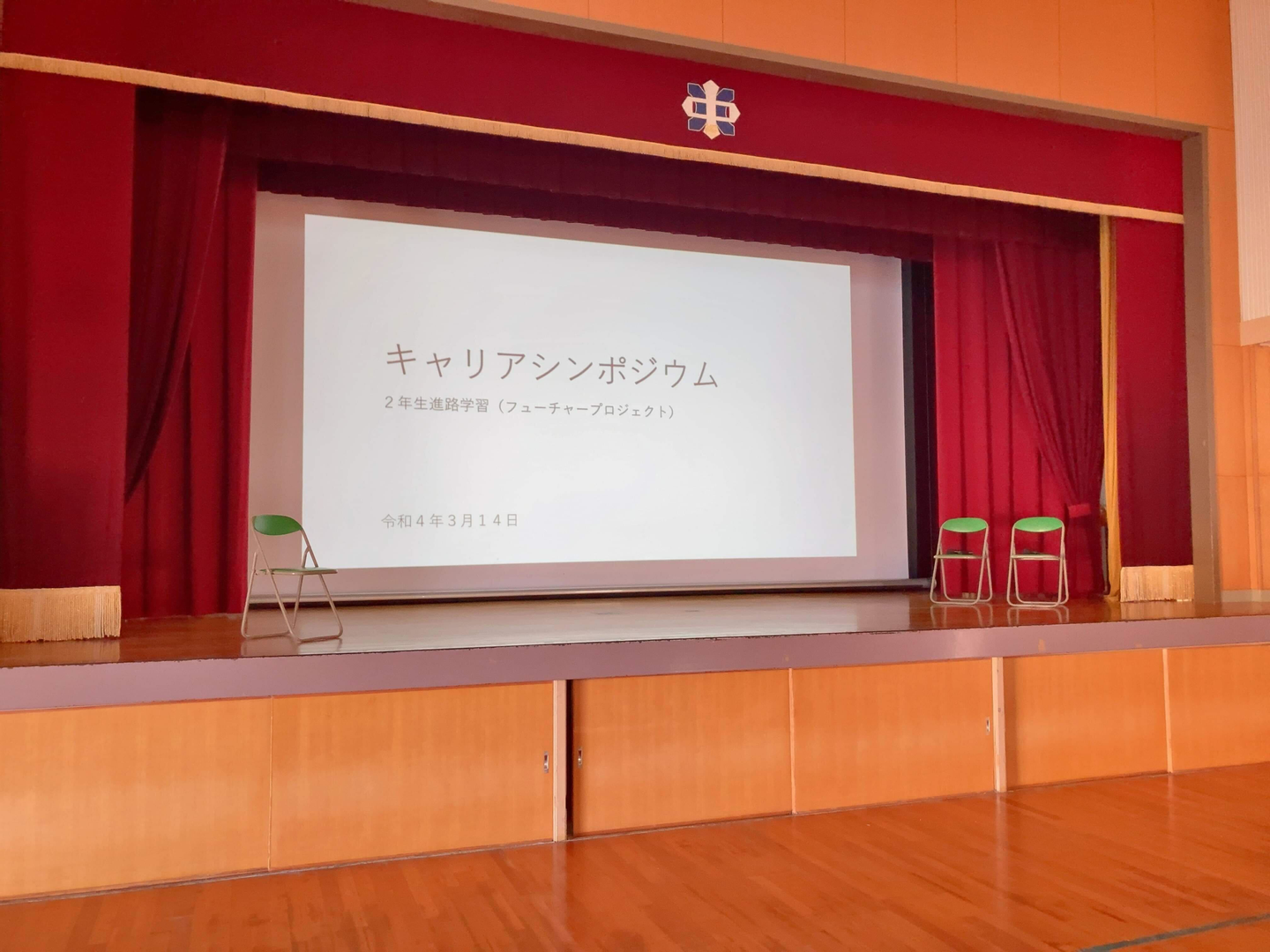 今回のシンポジウムの対象となったのは中学二年生の生徒さんたち。ちょうど進路について考え始める時期ですよね。そのような大事な催しに、今回弊社代表の水野がスピーカーとして依頼を受けまして、ありがたく講演させていただくこととなりました。