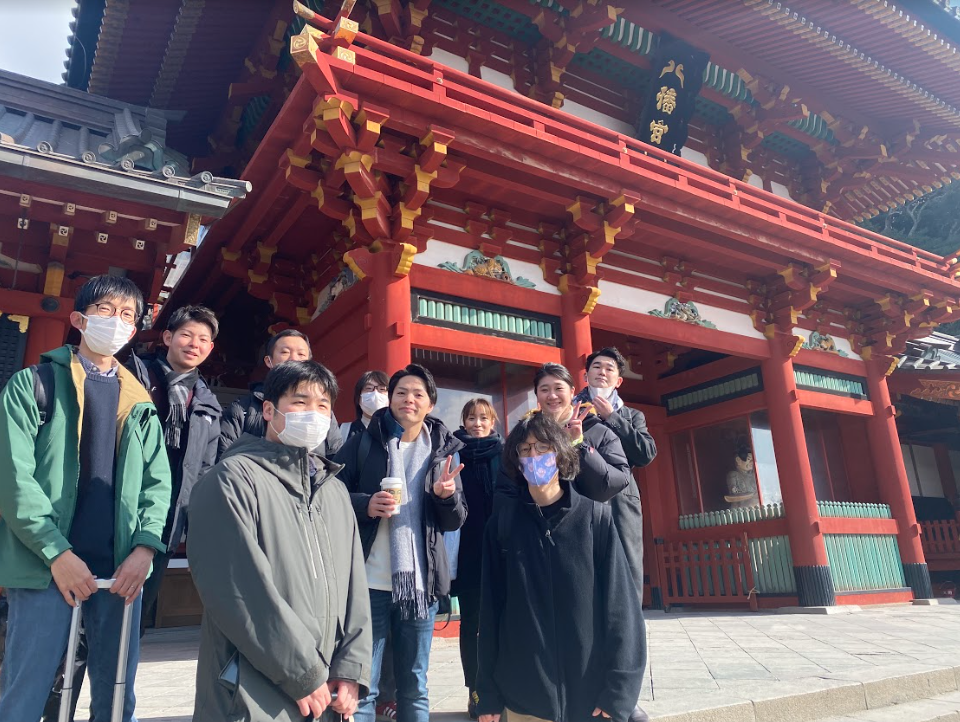 フレッシュな気持ちで柔軟なアイデアを出すために、普段の南青山オフィスから飛び出して鎌倉にやってきた私たちは、まずは鶴岡八幡宮にご挨拶。