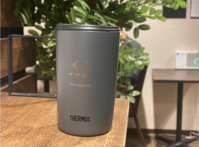 このイチロウタンブラーを作った背景として、サステナビリティへの取り組みの一環として紙コップ等の使い捨て容器軽減の意識向上を目指してタンブラーに決定しました。(社員からは高評価で、私益田も出社時は必ず持参しております!)