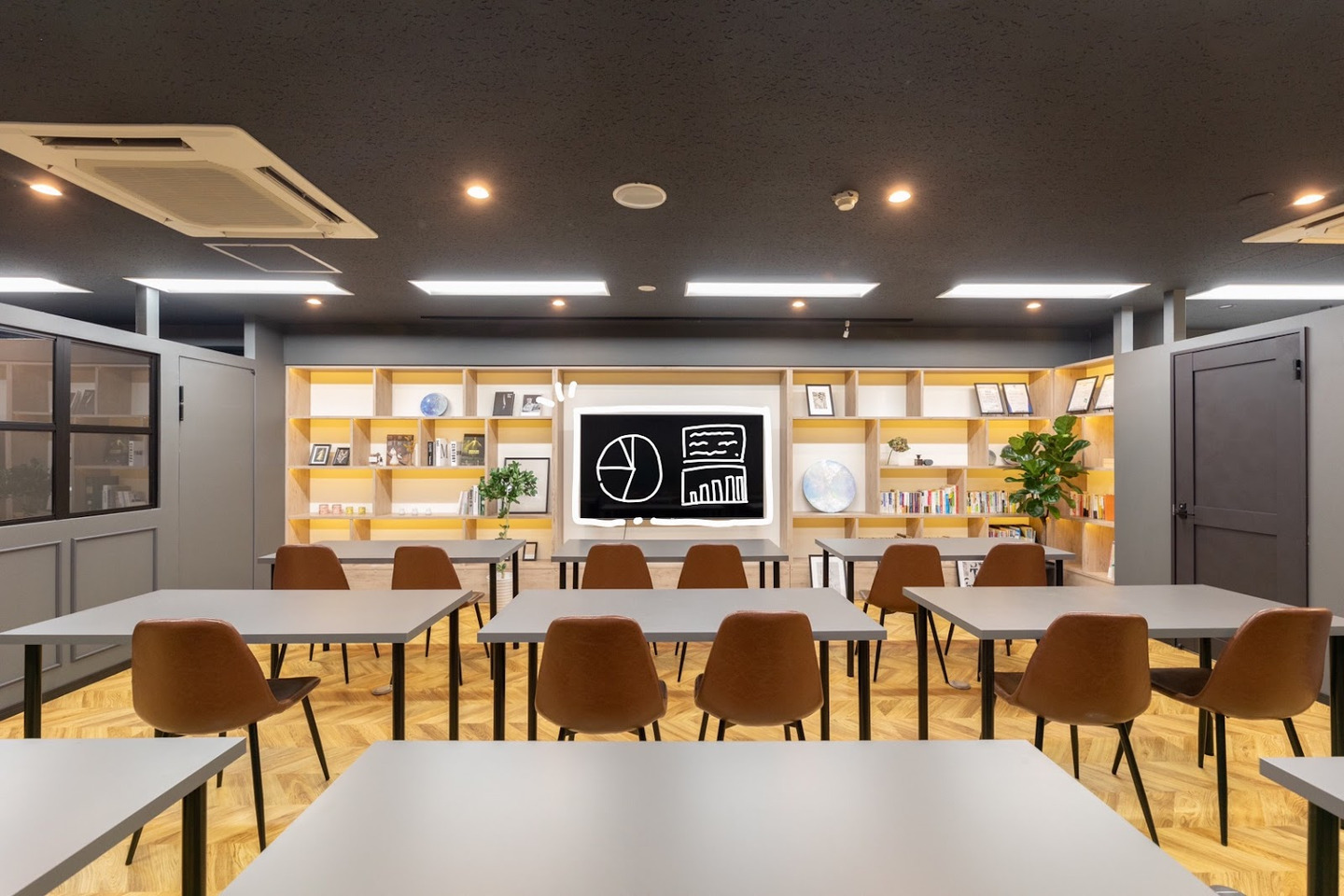 セミナールームは執務室とは打って変わって、落ち着いたダークトーンになっています。