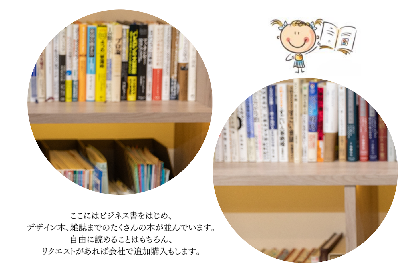 入ってすぐある大きな本棚があるのが特徴です。