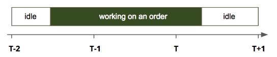 解決 時間ウィンドウT(TとT + 1との間)内に注文を送るために、shopperはTの前の注文を処理し始めることができます。図2は、shopperがウィンドウT-2の注文に取り組み始め、 大部分の注文は2時間未満で済むので、配送ウィンドウTのキャパシティーは、主に時間ウィンドウT、T-1、およびT-2におけるshoppersの数に依存します。