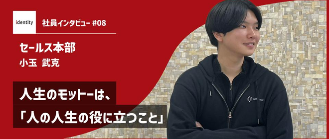 こんにちは!株式会社アイデンティティー採用担当です。 今回は、セールス本部 パートナーセールス部 小玉武克さんのインタビュー記事をお届けします!「人の人生の役に立ちたい」という思いを胸に、アイデンティティーで挑戦を続ける若き営業パーソンに迫ります!【プロフィール】セールス本部 パートナーセールス部:小玉 武克 大学卒業後、アイデンティティーに入社(23卒)。セールス本部 パートナーセールス部でパートナーセールスを担当。学生時代は水泳に打ち込み、高校2,3年生の時に生徒会副会長を経験。趣味は、釣り・キャンプ・ドライブ・お酒。人生のモットーを実現できると感じ、入社を決意ー小玉さんはなぜ、ア...