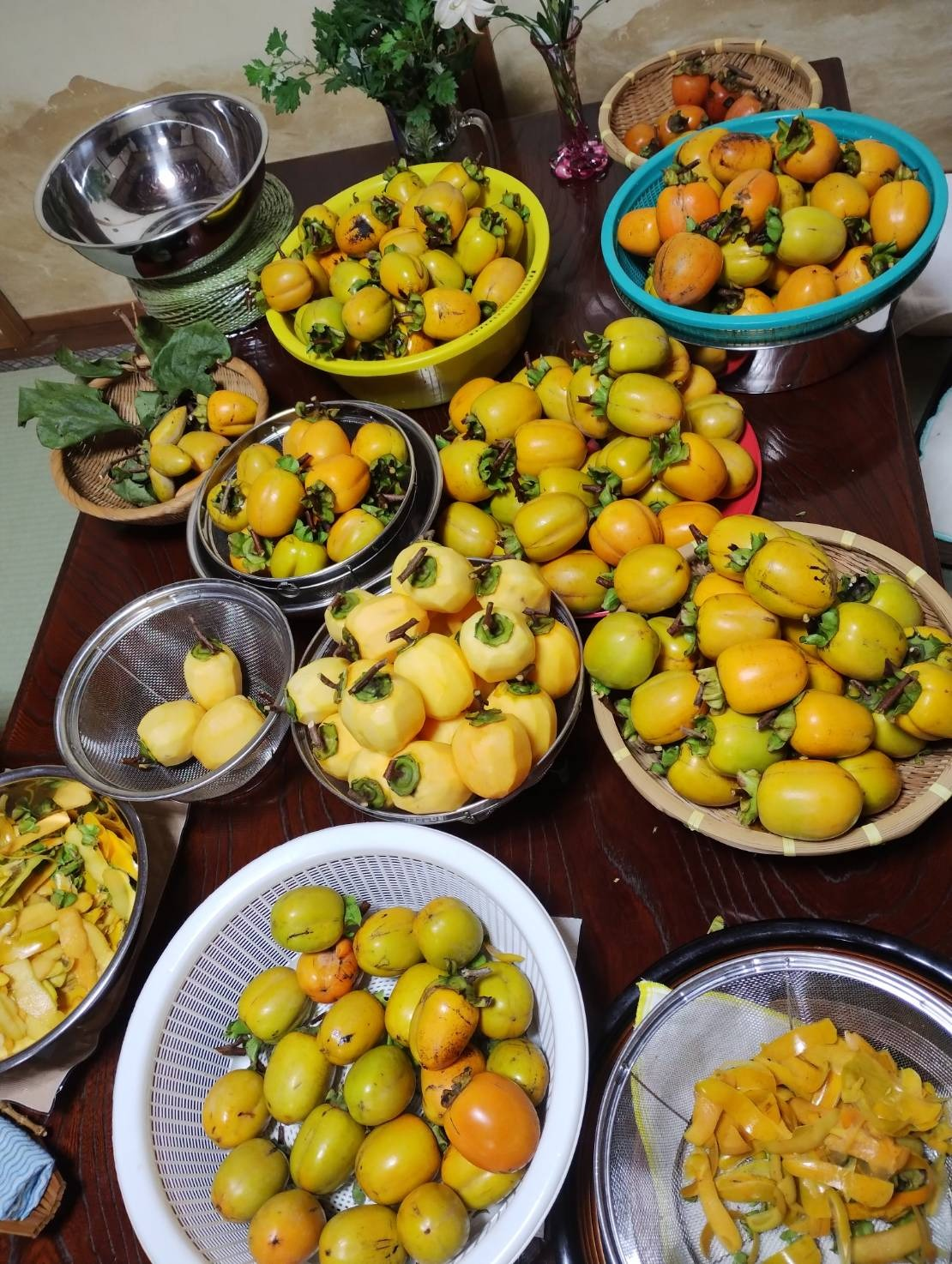 渋柿なので、思いっきり熟すまで待つか、干し柿にすると美味しく食べられます。