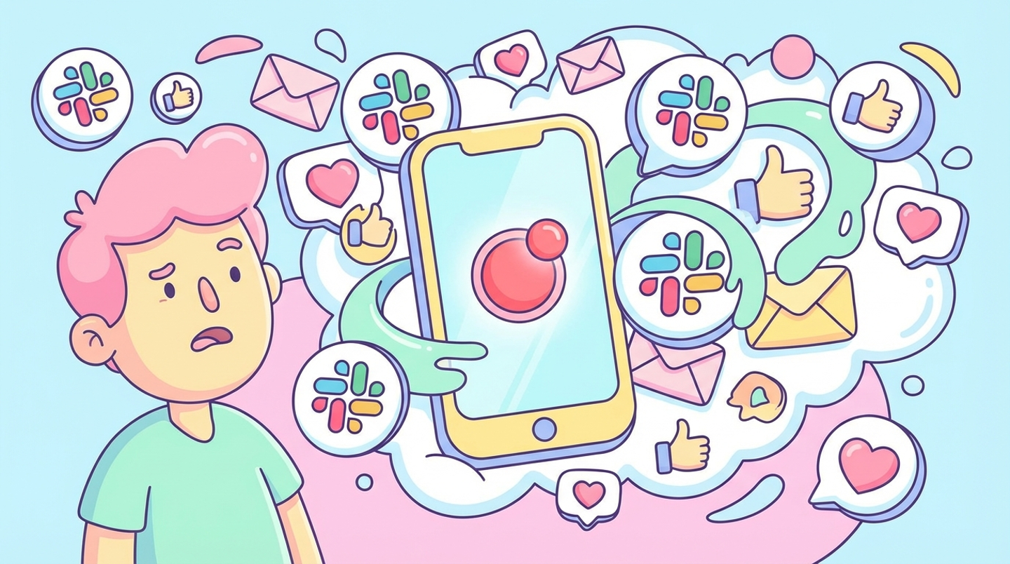 Slackを開いた瞬間、メンションに気づき、別のチャンネルを覗き、気づけば10分経過。
