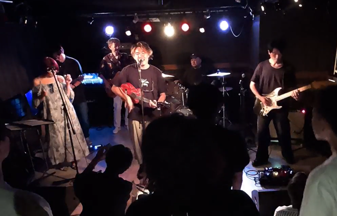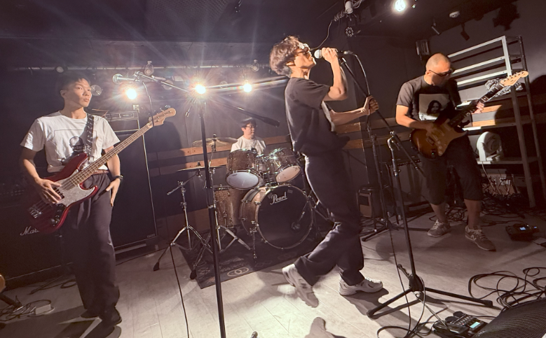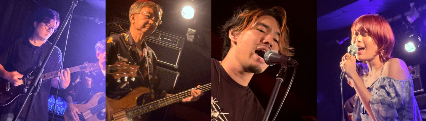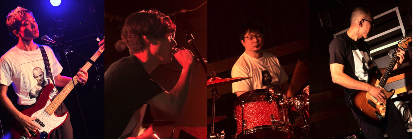 ・Gt: 寺村(CS事業本部)/Ba: 山口(監査役)/Uk/Vo: 小橋(アセスメントサービス部)、伊礼(マーケ部)/Dr: 花城(アセスメントサービス部)/Gt:岩崎(ディフェンシブセキュリティ部)