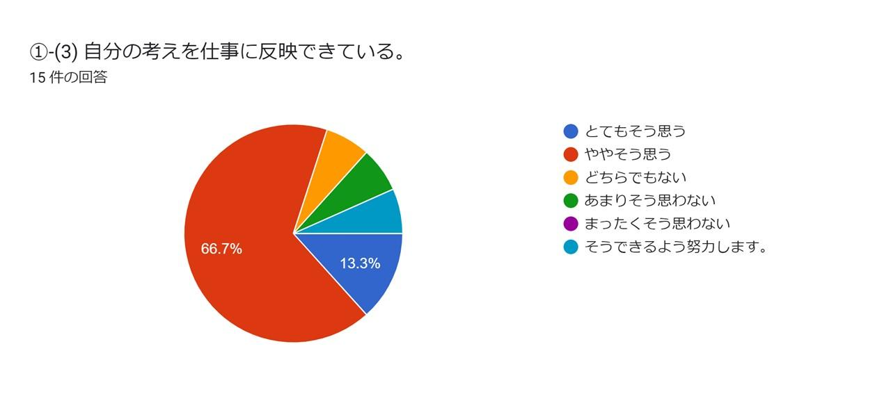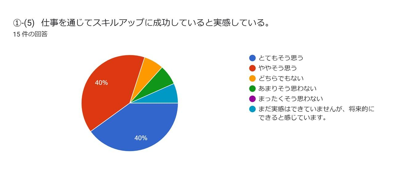 このように、ソフトスキルだけでなく、ハードスキルも習得できていると実感する人が多いことに対して大変うれしく思います。自分が希望すれば、スキルアップする機会は十分に与えられる環境である一方で、個人の意識次第という側面が大きいため、自分から臨んでいかないと中途半端なスキルアップになってしまう。という懸念の声もありました。
