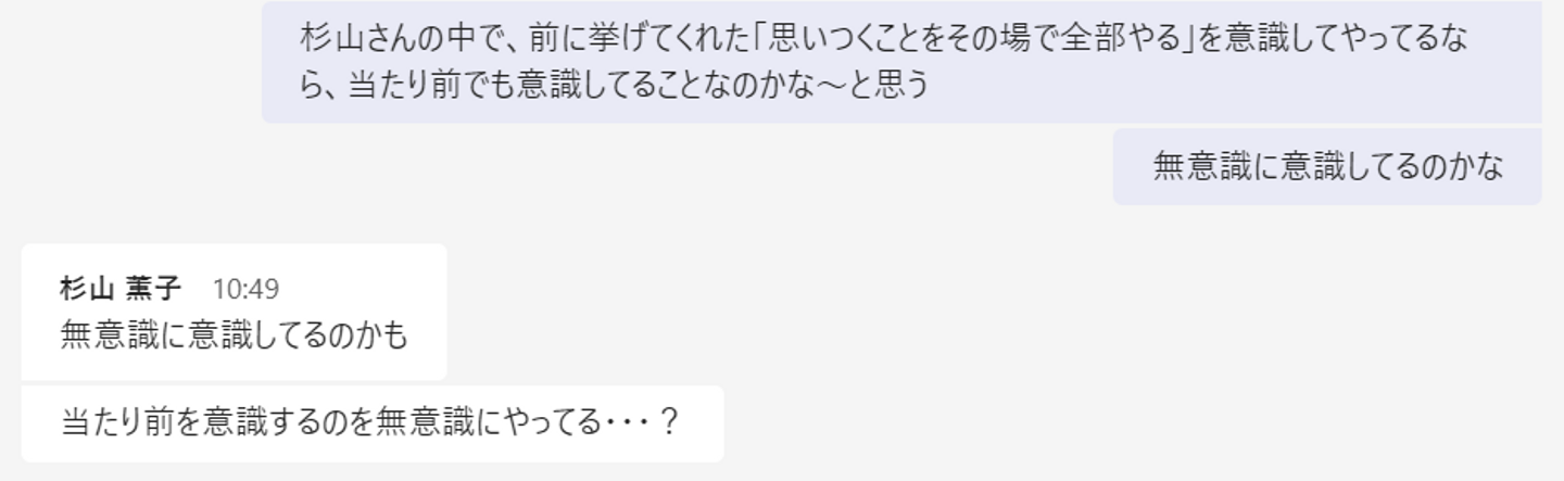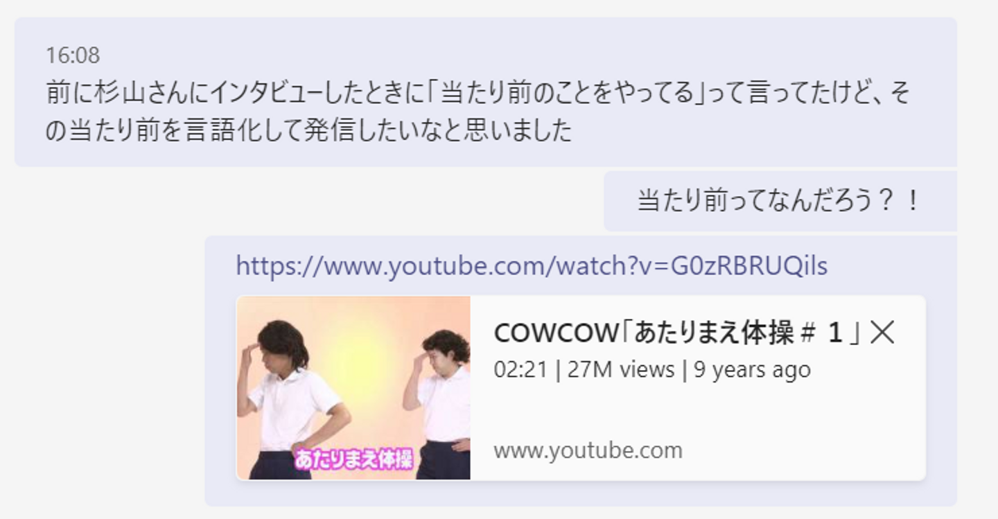 このインタビューの中で杉山さんは「当たり前のことを当たり前にやってきたからこそ今がある」と話してくれたのですが、「当たり前のことってなんだろう?」と、ふと思ったので、チャットで聞いてみました。