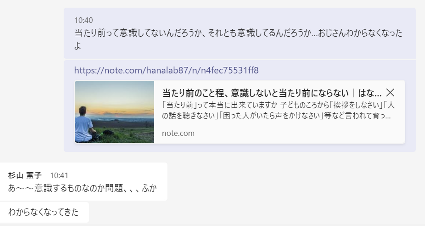 「当たり前」のことを話していたら、当たり前って意識していることのか無意識なことなのかわからなくなってきました。