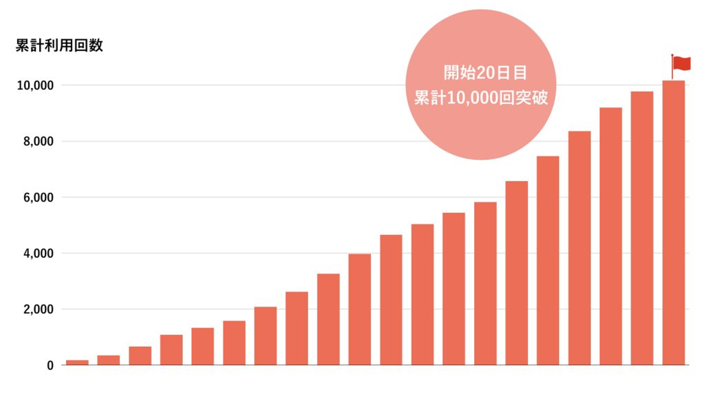 開始20日目の10月20日には、「always LUNCH」「always DRINK」の累計利用回数が10,000回を突破いたしました。これは、20日間で1店舗あたり平均約200名、1日あたり約10名を送客できていることになります。