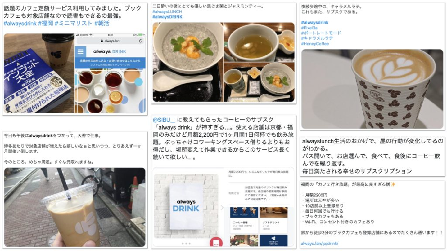 「always LUNCH」「always DRINK」をご利用のお客様からはSNS等で多くの反響をいただいております。(以下、一部抜粋)