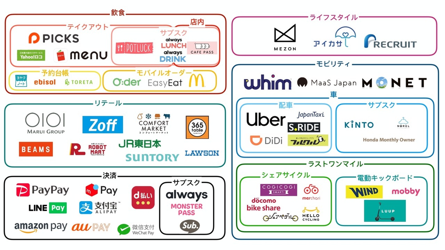 特に各キャリアは決済、5Gの提供開始もありMaaSに注力していることがわかります。各社ごとに特色が出ており、docomoは国内事業者が多めですがソフトバンクはSVFで投資している海外勢とも連携しており特にモビリティと決済に注力しています。KDDIに関しましては他の企業と比べ少ない印象があり、過去の買収した企業等を見るとOMOよりIoTに注力している形です。