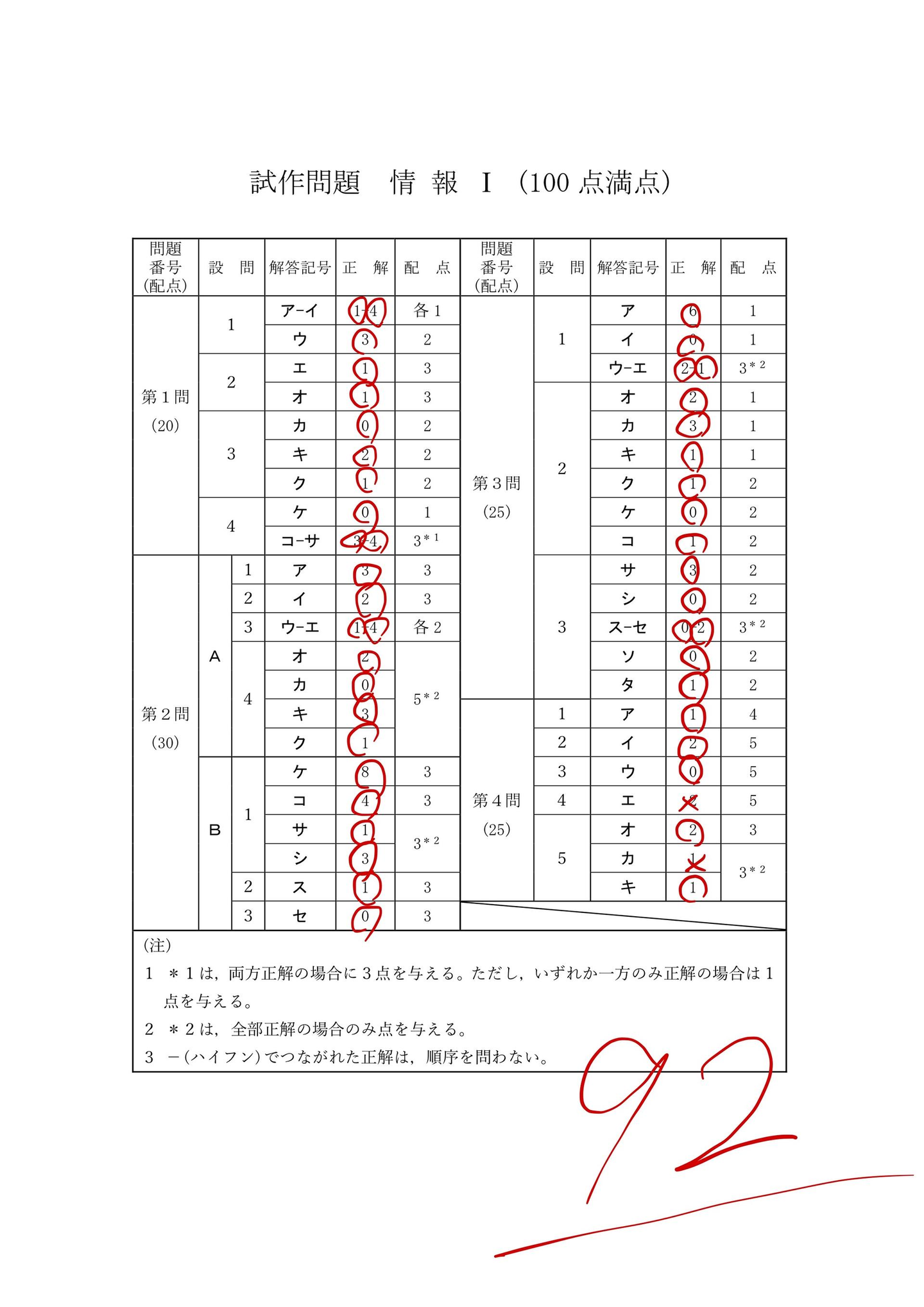 あらためて見返すと、つまらないミスをしたと感じてしまいます。ただ、そう感じるというのが「情報Ⅰ」の問題の全体に言える特徴だと言えそうです。詳しくは総評で。