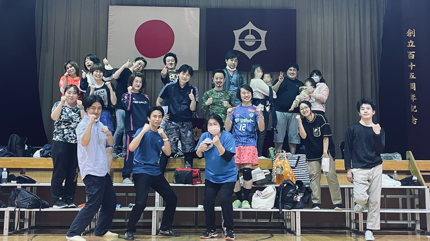 終業後に体育館を借りて、みんなで集まってワイワイガヤガヤ活動しています!