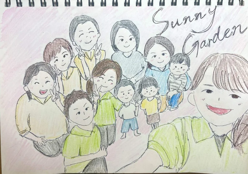 サニーガーデン土原店の皆さんの集合写真をお借りしてイラストにしました〜☺️
