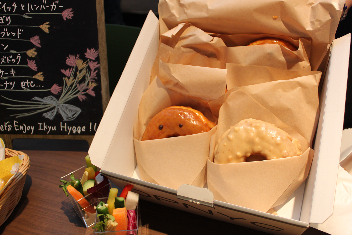 ドーナッツにお顔がチラリ・・|ω')